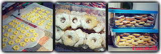 Create i fiorellini con lo stampino e create al centro un piccolo buco. Metteteli sulla carta da forno e infornateli per circa 20 minuti a 170° (i biscotti non dovranno scurirsi).