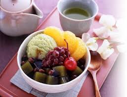 - ANMITSU: è un dessert composto da cubetti di gelatina bianca mischiata con acqua o succo di frutta e servito in un recipiente insieme ad una marmellata dolce di fagioli, a dei piselli e a della frutta mista; alla fine ci viene versato su uno sciroppo dolce chiamato mitsu.
