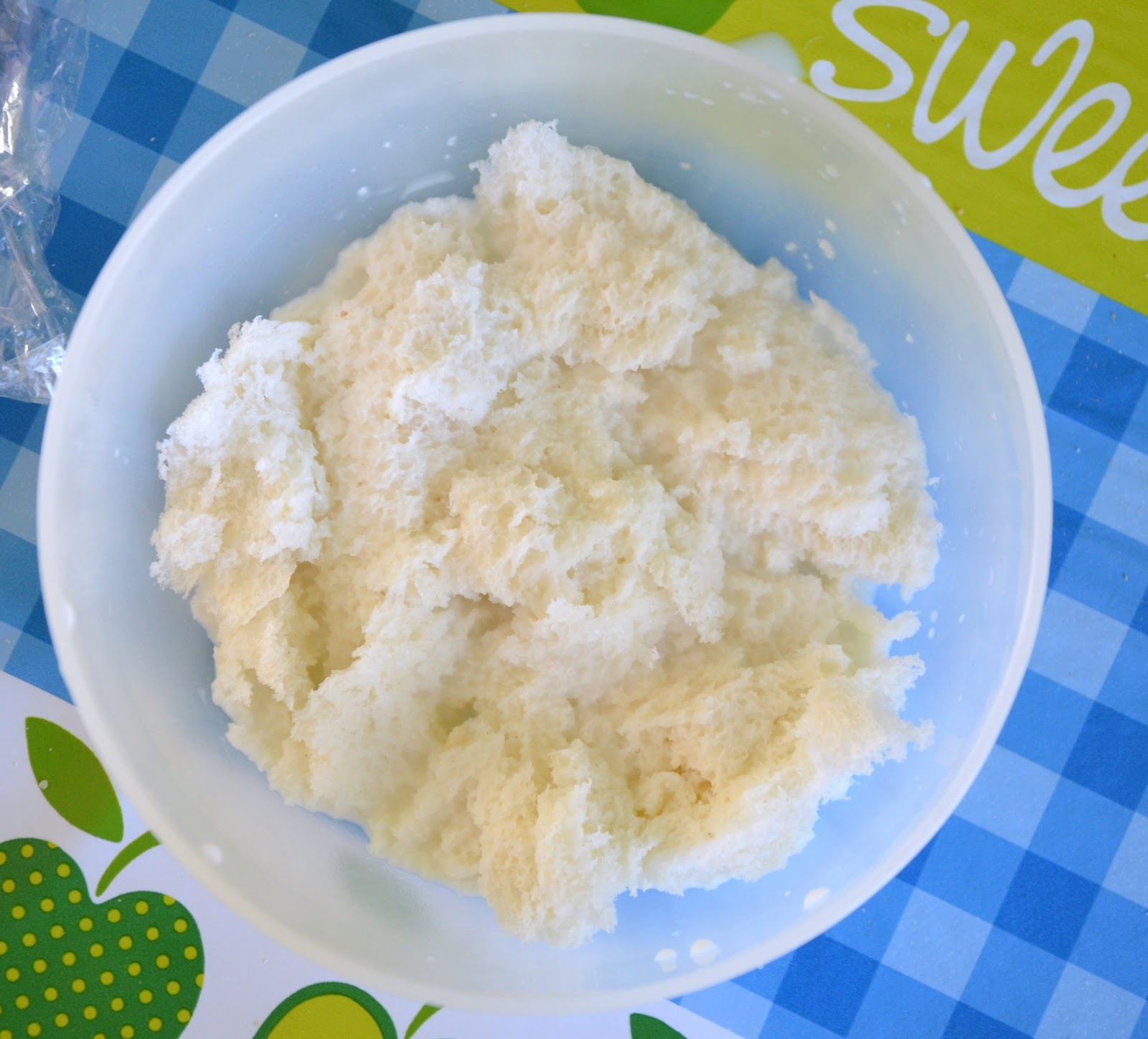 | In una zuppierina mettere la mollica di pane e bagnarla con del latte |