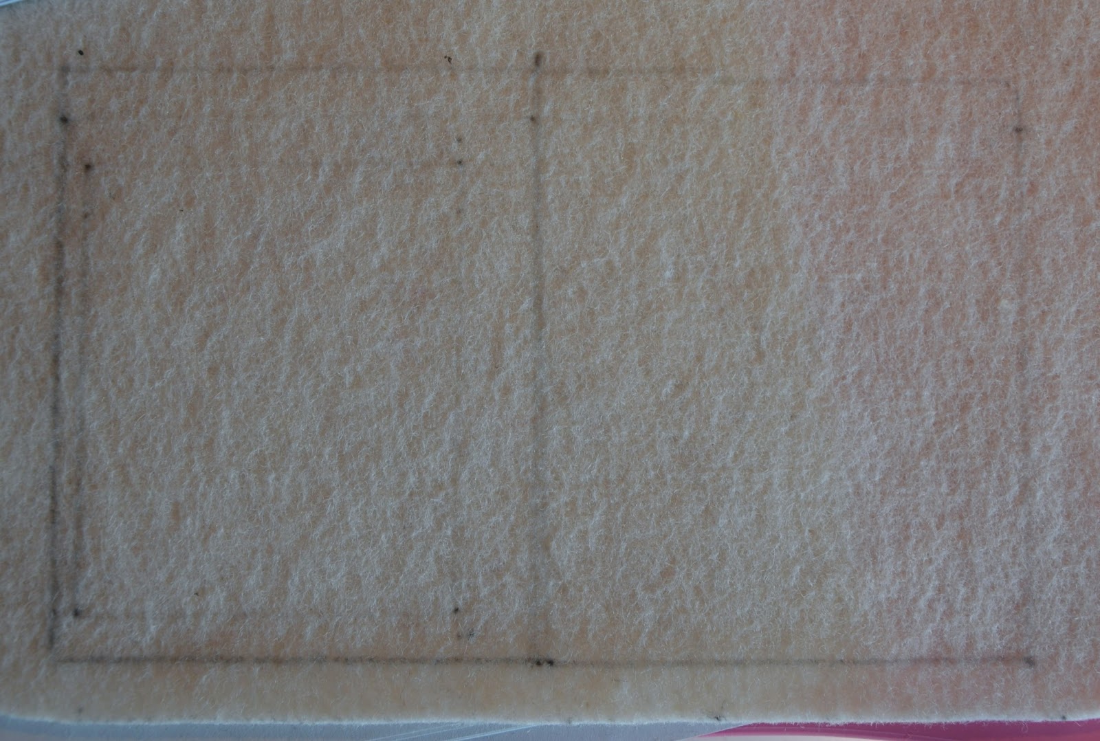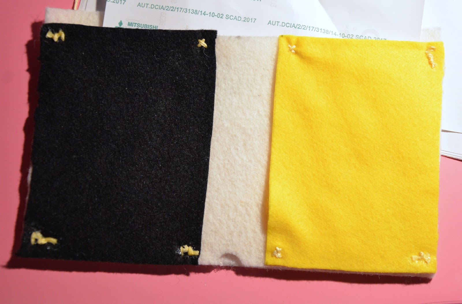 | Faccio con il pannolenci dei rettangoli di diverse misure che mi serviranno per fare le tasche porta tessere e anche queste le incollo con la colla a caldo |