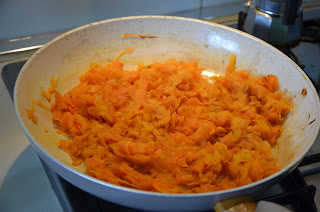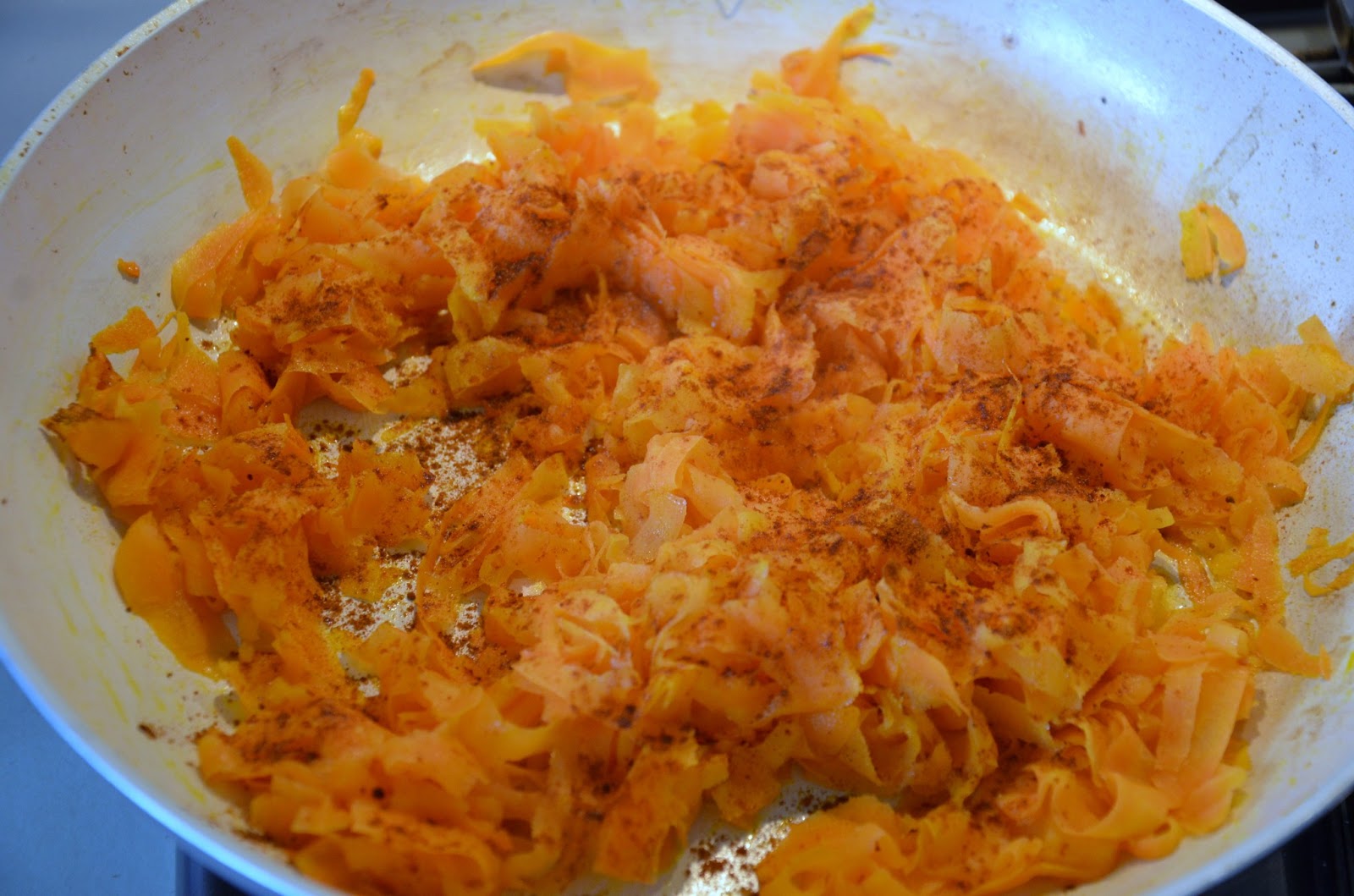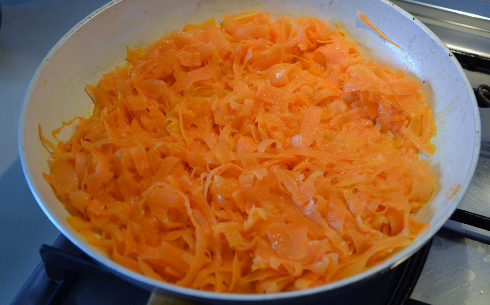 - Quando avete finito mettete dell'olio in una padella e versate le carote, mettete del sale e lasciatele appassire.