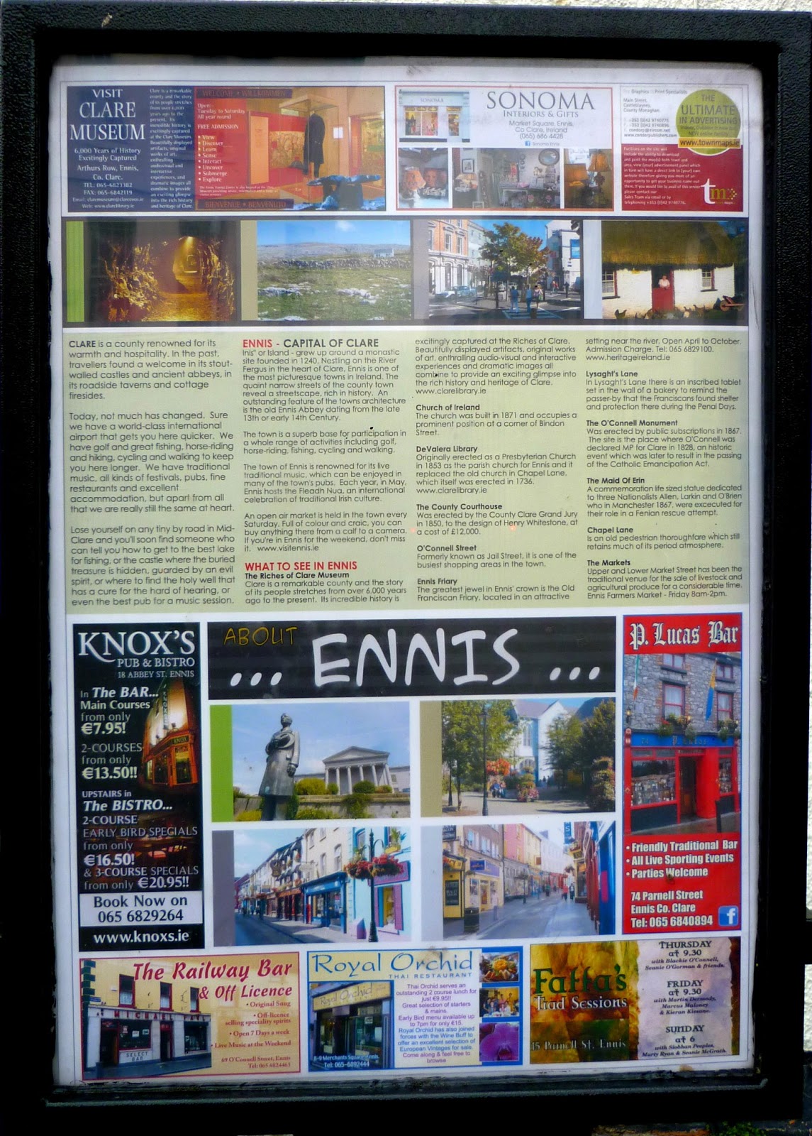 Purtroppo non ho potuto visitare tanti posti, un pò per il poco tempo a disposizione e un pò per le condizione metereologiche! Volevamo andare alle "cliff of moher" ma c'era troppo vento ed è pericoloso andarci con forti raffiche appunto di vento. Sono andata a visitare due "cittadine": Ennis e Galway. Sono entrambe molto carine ma la cosa più bella è che sono super colorate!!! Vi lascio delle foto... Se ci siete stati lasciate dei commenti su cosa avete visitato oppure su quali sono i posti che varrebbe la pena visitare!!