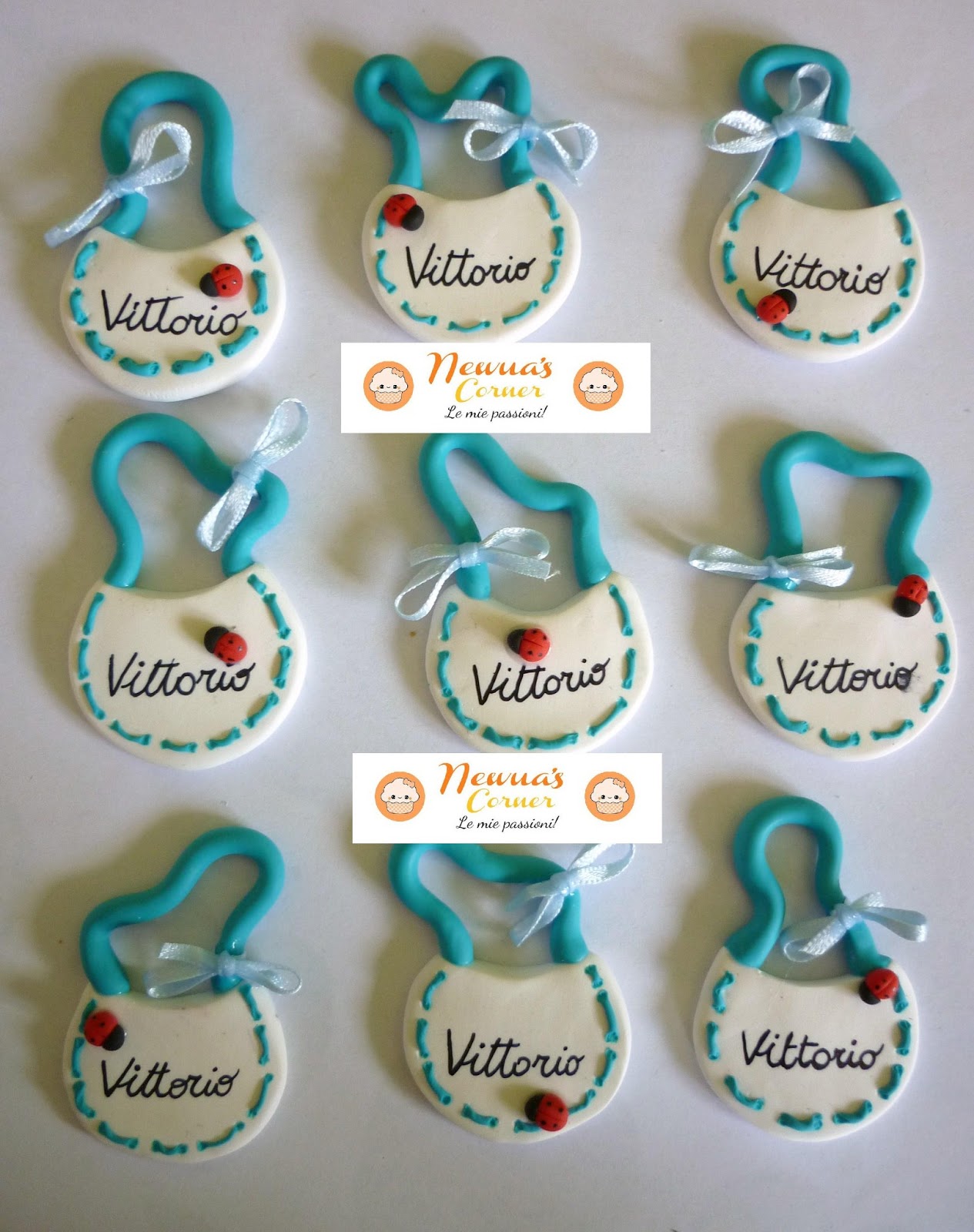 Buonasera a tutti! Come avrete capito dal titolo del post oggi vi mostrerò i decori delle bomboniere che ho realizzate per il battesimo del mio cuginetto! Ditemi cosa ne pensate, mi fanno piacere i vostri pareri =) A me piacciono tanto e come prime bomboniere devo dire che sono venute bene!