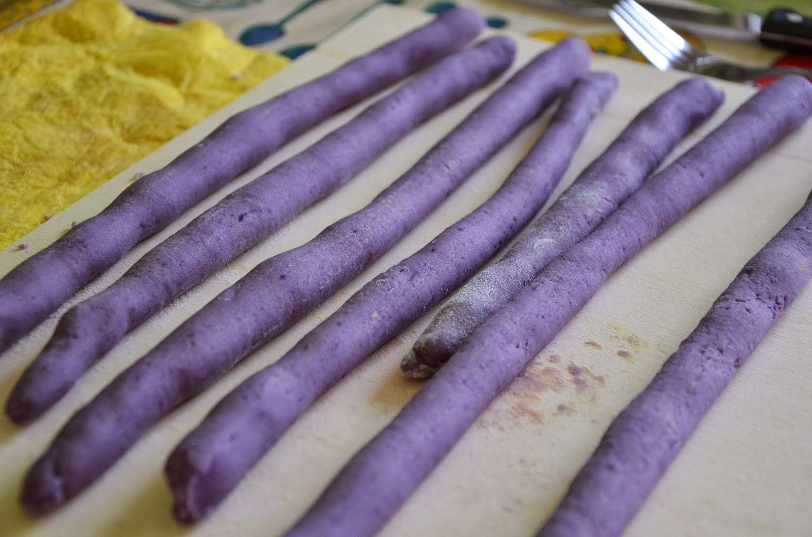 | Rimpastate e quando avrete ottenuto un impasto liscio e omogeneo formate dei rotolini larghi 1cm |