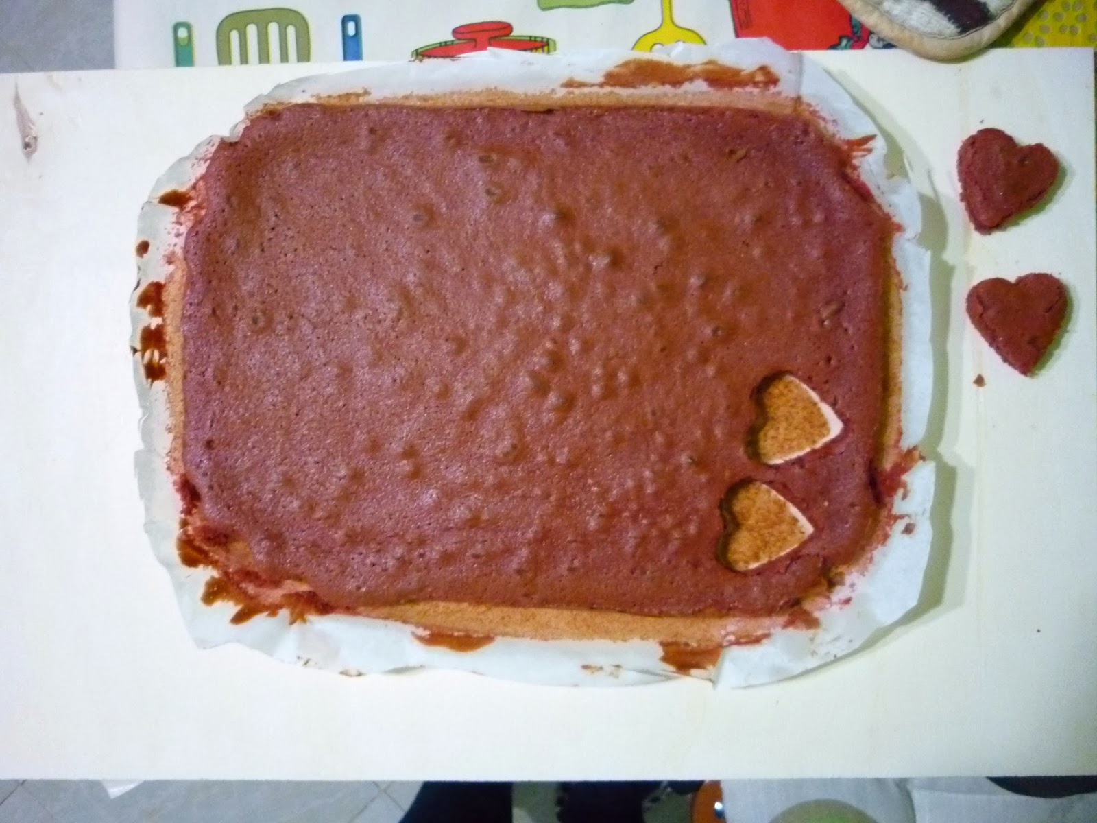 - Quando il composto sarà ben amalgamato, aggiungete, in tre volte, prima la farina e poi il composto rosso e mescolate fino a completo assorbimento.