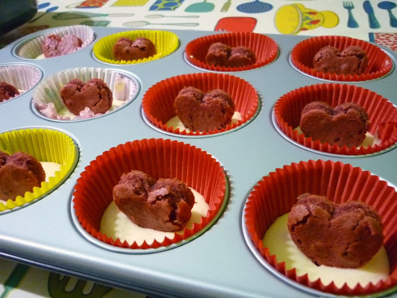 | Mettete i cuoricini al centro del pirottini con la punta verso il basso. |